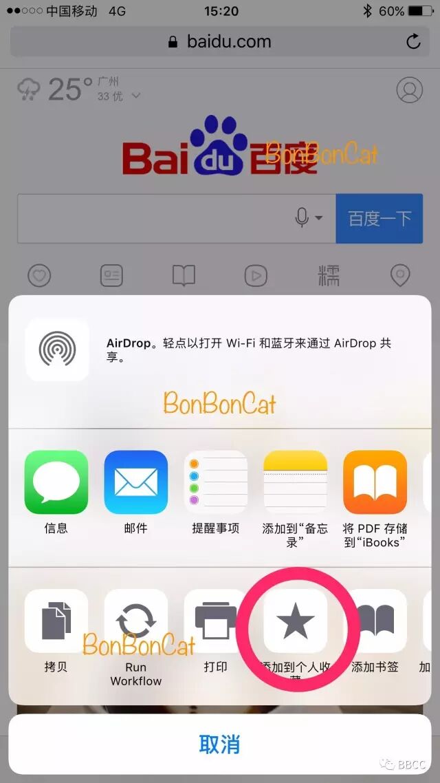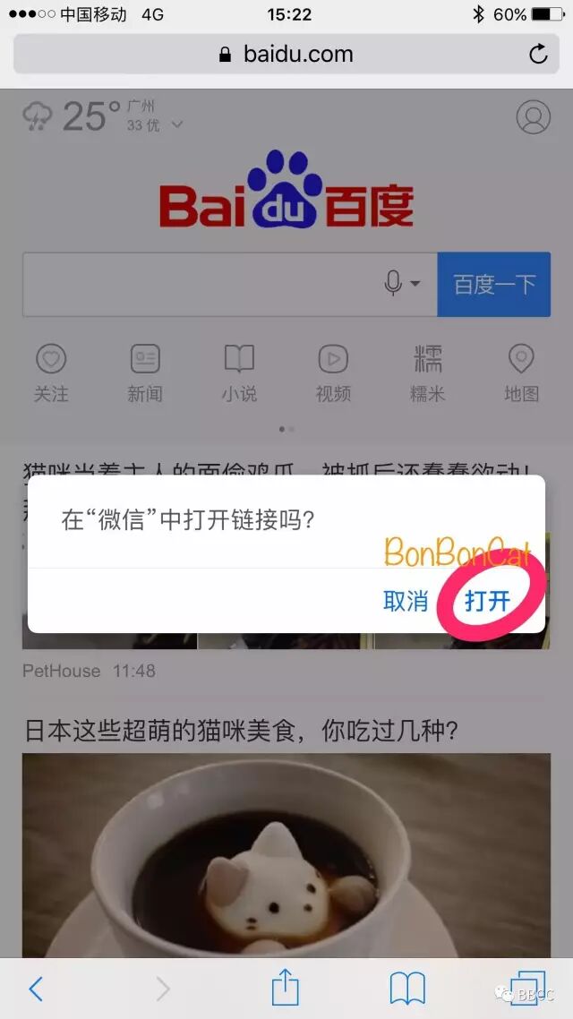 另外提示一下,如果你在提示窗口没选打开,而是选取消,你会发现再次点击这个收藏链接的时候会提示不能使用了,这个时候只要把Safari从后台退出再启动,这个调用功能就又恢复了!