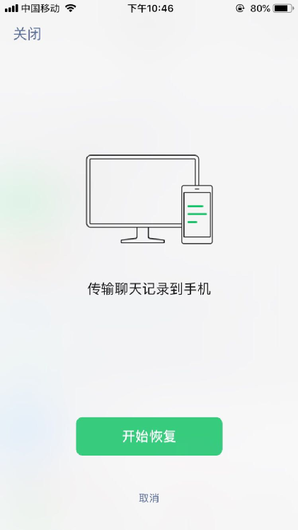 这样在手机B上会收到一个恢复确认的提示,按提示点击开始恢复,这样选定的聊天记录就会自动恢复到手机B上了。