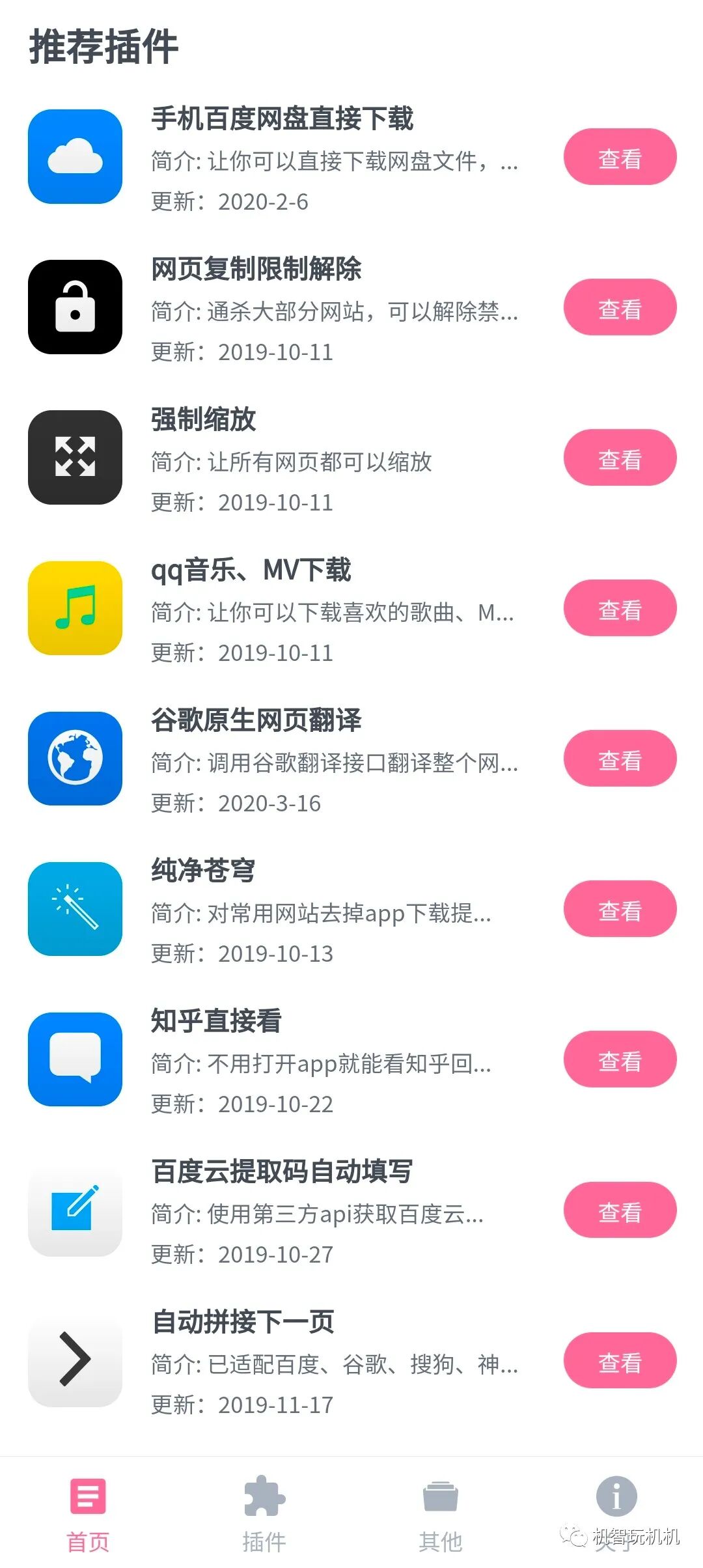 最后再给大家分享一个拥有数百款via插件的网站,用小智分享解除限制的via浏览器(别的版本不行哦)即可直接选取你喜欢的插件安装,即点即装,非常的方便和高效。