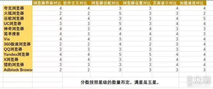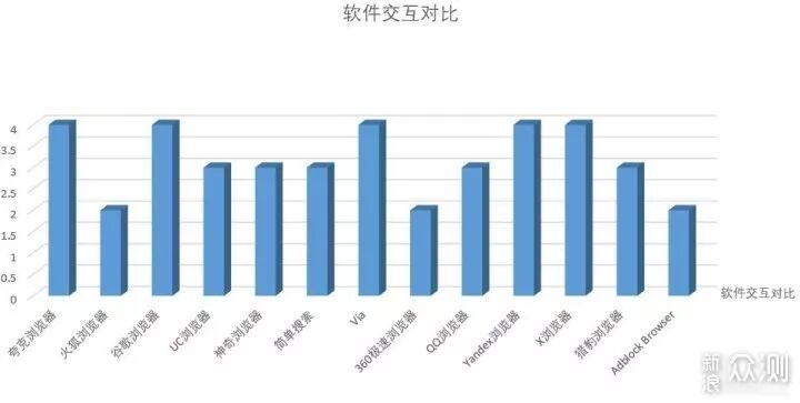 软件交互对比:可以从表格中得知夸克浏览器、谷歌浏览器、Via、Yandex浏览器、X浏览器交互都不错。