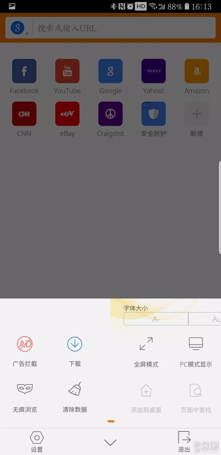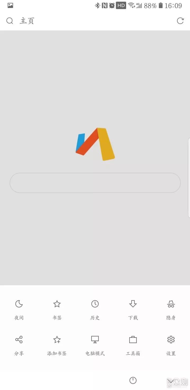 ▲同样和Chrome一样的顶栏三按钮——主页/标签页/工具,但是不支持长按打开新标签页,也无法点击工具按钮自动触发菜单,也就是说相当于把工具按钮下的菜单变成了一级菜单,在大屏手机占据主流的今天或许交互太过复杂,而且为了追求和PC端打通进而实现全能,牺牲了页面的简洁,主页按钮偏多了。