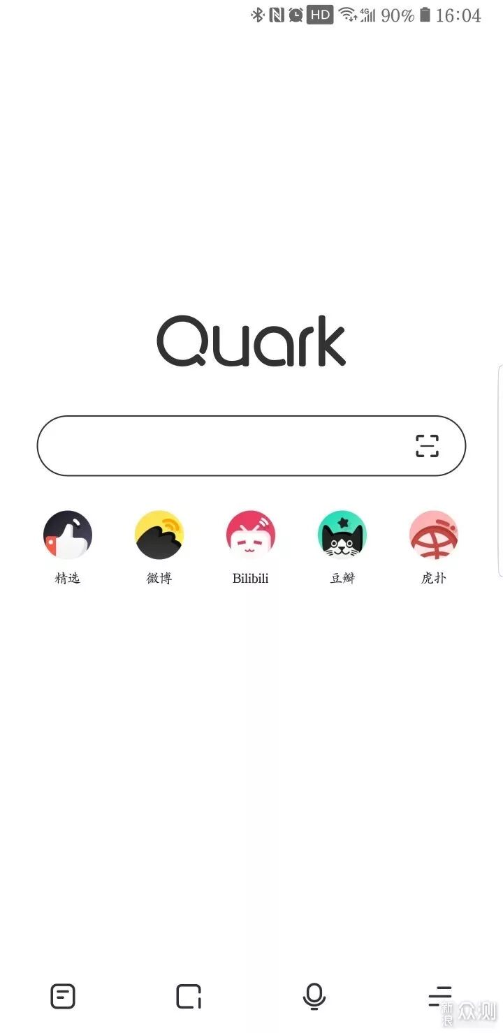 ▲界面设计非常简洁,个人非常喜欢这种风格,加分。主界面底部有三个导航按钮,分别是返回(长按回到主页)、语音搜索、设置。主页简洁不简单:而且越来越好看功能也越来越丰富了。操作栏在下方(照片-键盘-语音-菜单键);主页可定制:①明星模式,②上滑搜索热词(实时搜索/微博搜索/知乎热搜/微信热榜/B站热榜/一周热搜),这个设计既应该并不让人反感,反而增加了浏览器的可阅读性;③下滑首页导航,不过暂时只能添加7个导航网站。
