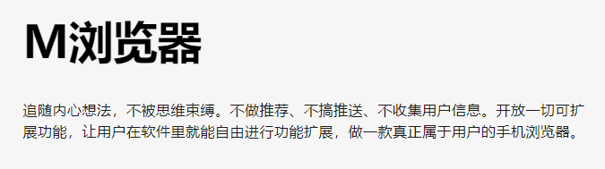 M浏览器定位是一个极客APP,它可能不是一款很完善、很耐用的APP,比如部分界面的UI我觉得都不是很舒适,一些功能也有Bug。