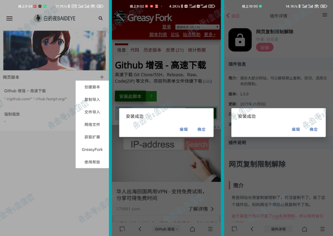 M浏览器提供了丰富的脚本渠道,除了自己编写脚本,还可以导入别人编写好的脚本,甚至Greasy Fork的脚本也可以使用,甚至Via浏览器有一个专门的插件市场也可以直接安装使用。