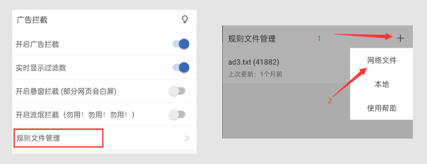 这里奉上开发者自己在用的广告拦截规则,直接把这串网址添加到上图网络文件中即可。