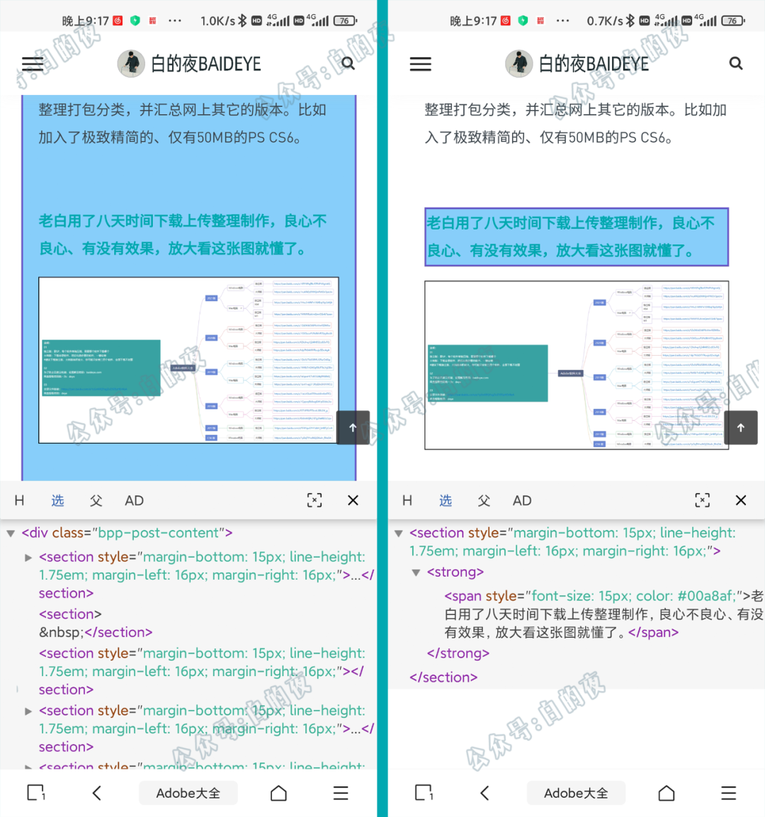 手机上很少见哪个浏览器有审查元素的功能,顶多有一个页面源代码,很不直观。