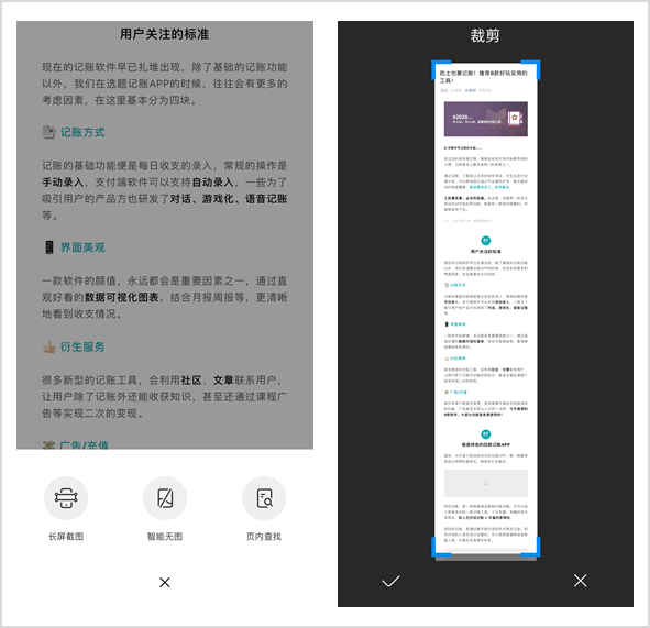 简单搜索自带的工具箱,没有Alook那么多,但每一个都是非常实用的:长截图/智能无图/页内搜索(一定程度上满足了长截图)。