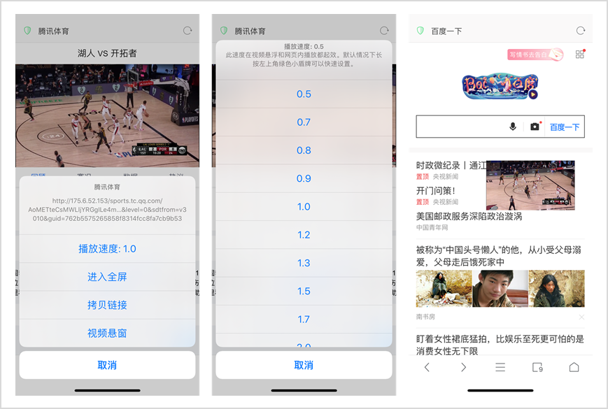这里的设置可以将视频悬浮播放,或者设置倍速,从0.5-2.0一共有9个变速区间,长按也能实现倍速播放