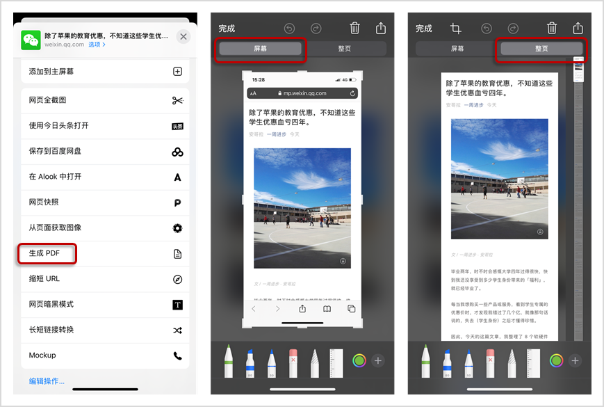 另外一点就是Safari的截图功能,大家都知道ios本身无长截图功能(借助第三方可实现),但如果在浏览器中利用捷径或整页截图,可以生成网页的PDF。