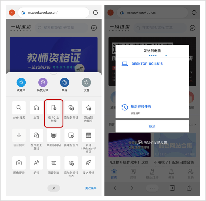 其中有一点还是蛮有趣的,APP上浏览的网页可以选择在PC上继续浏览,在Windows系统设置中与Edge互相链接即可。