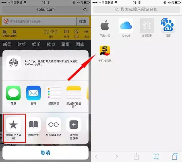 我们在浏览到一些想要收藏的网页的时候,可以直接点击网页下方正中间的菜单按键,将当前网页添加至个人收藏。以后这个网页就会出现在Safari的起始页上,我们可以用这个功能来定制个性化的导航页,最关键的是,没有广告!