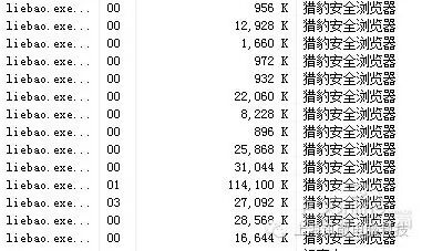 最小化浏览器后等五分钟的猎豹浏览器占用内存数据