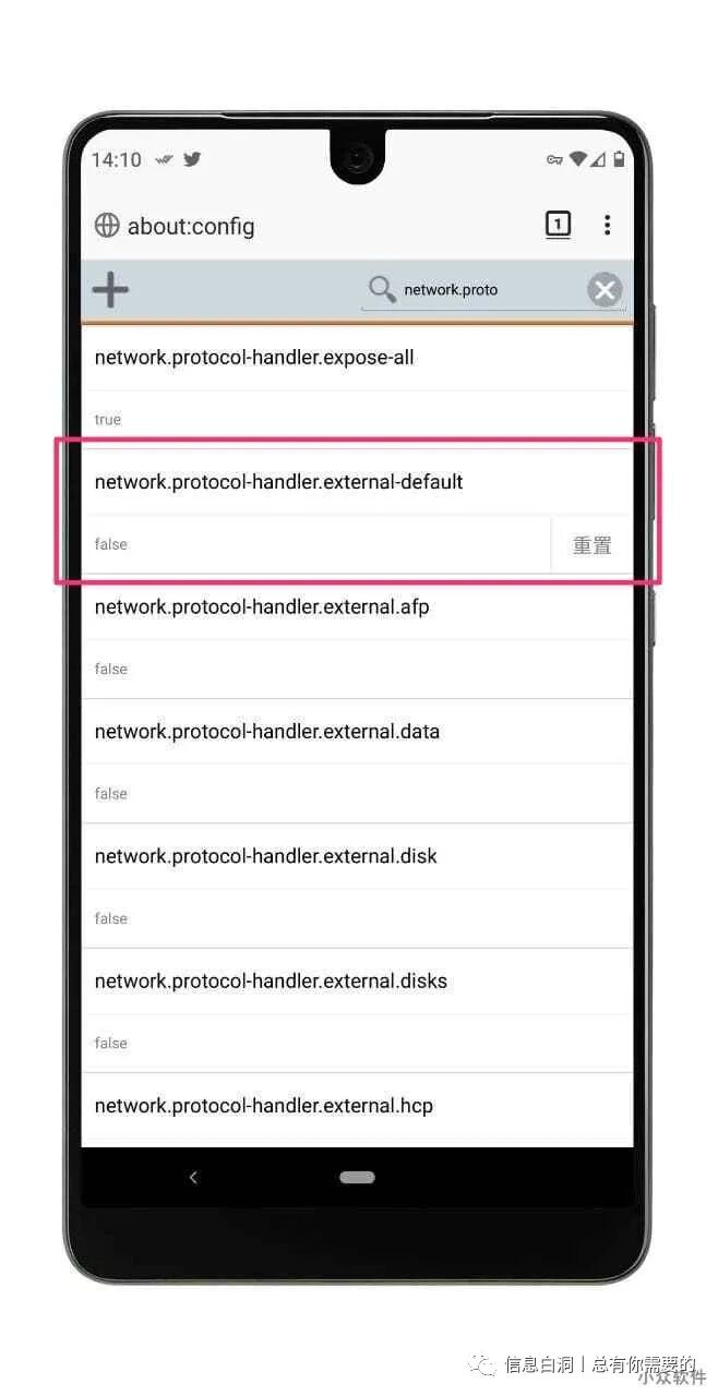 搜索network.protocol-handler.external-default并将其从 true 修改为 false