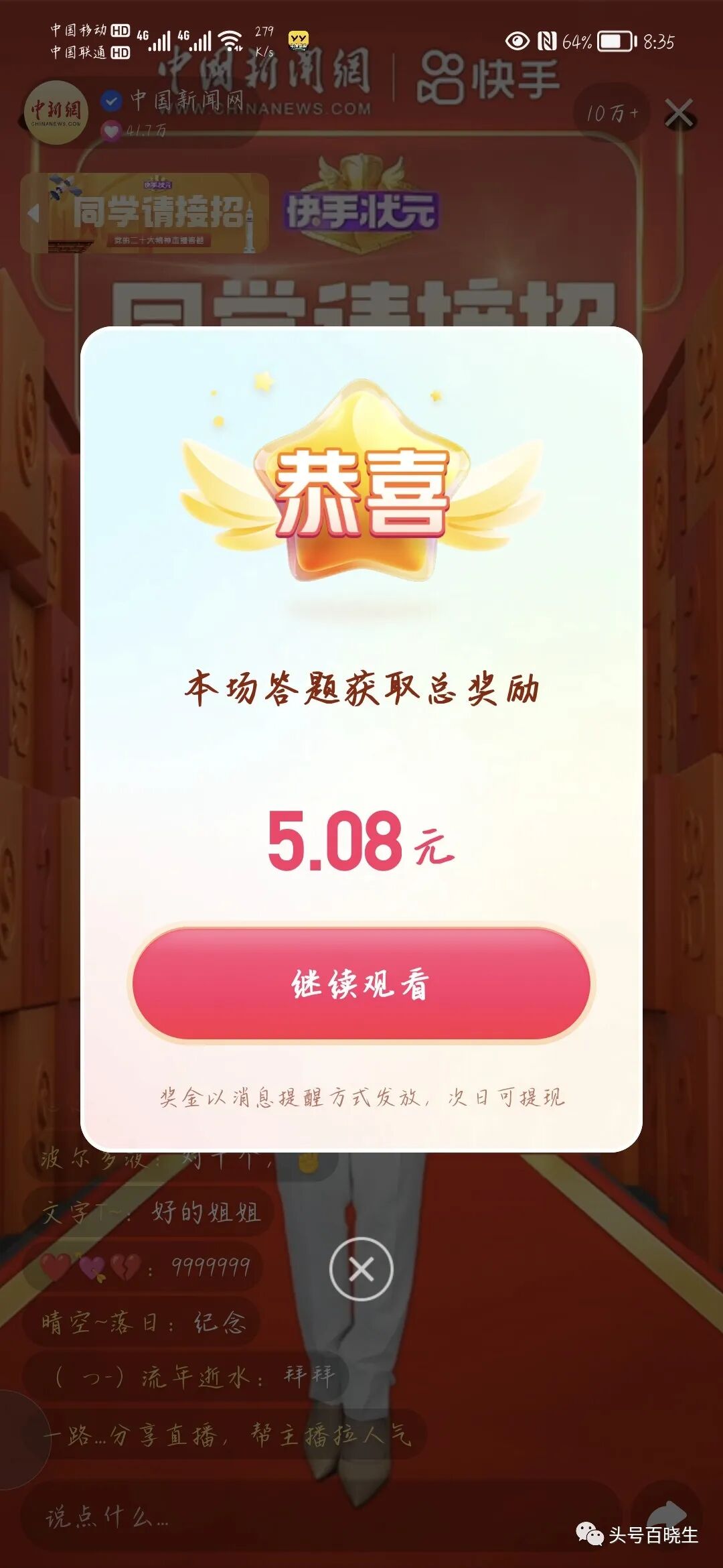 答题入口:快手/极速版 搜 快手状元