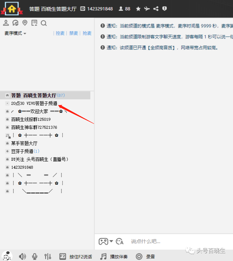 再点击 子频道 在点击 第二个VIVO子频道即可