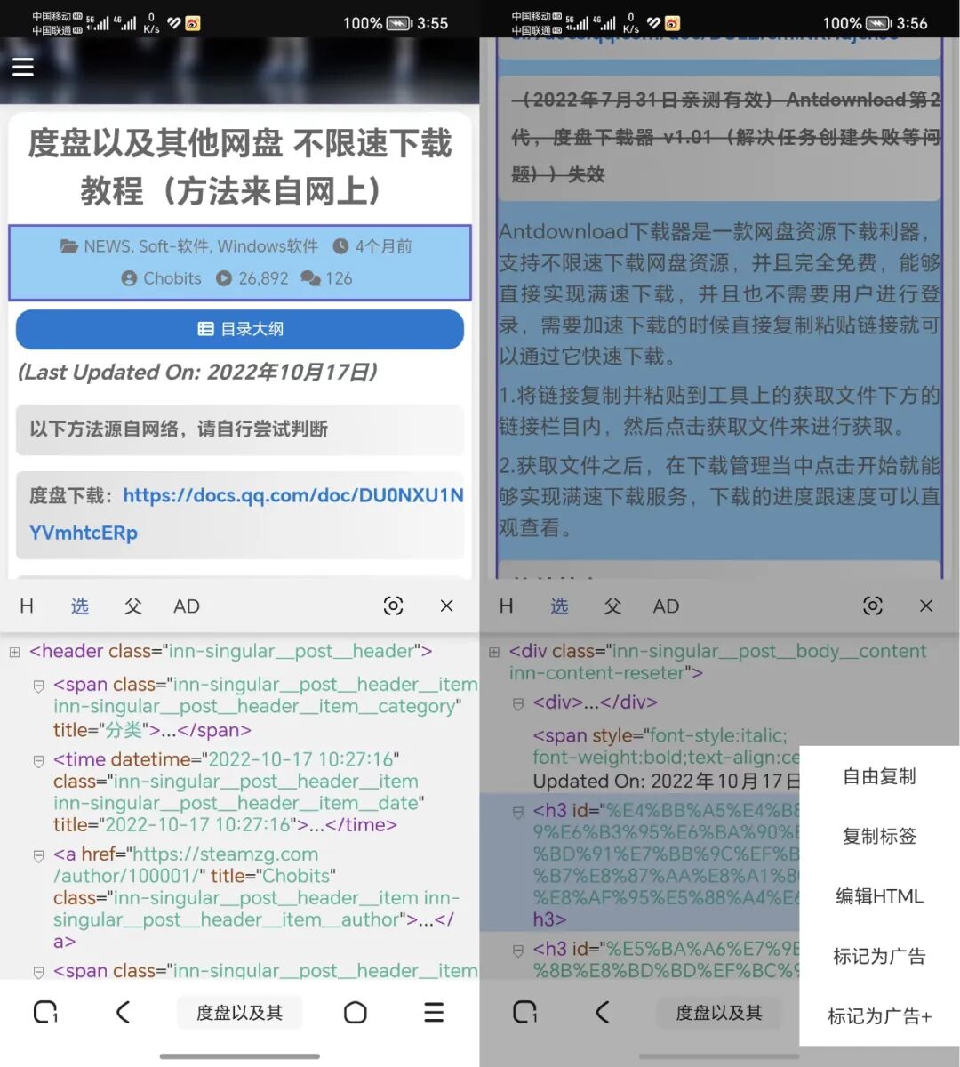 其次,在手机上,很少有浏览器能有审查元素的功能,最多也就是让人看到网页的源码,非常的不方便。