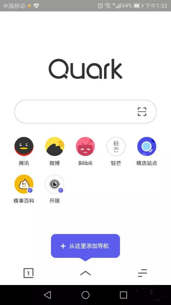 在首屏页面,夸克浏览器看起来干净清爽,简单,没有任何多余的东西,并且首屏可自定义。