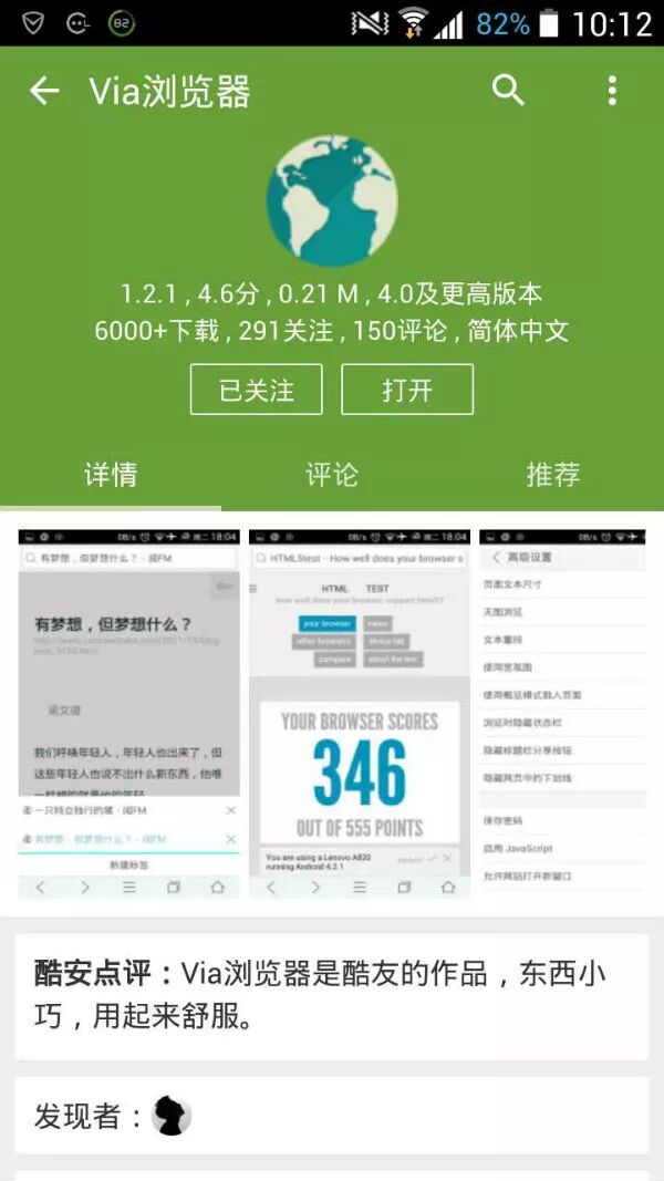 最后是Via浏览器。该应用极小,只有0.21M,速度快,也没有一些冗杂的功能。