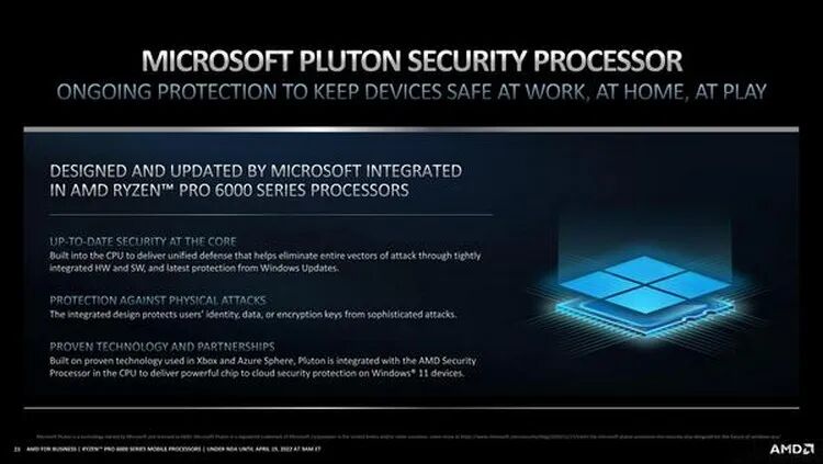 AMD 6000系PRO商用处理器就集成了微软的独立安全单元