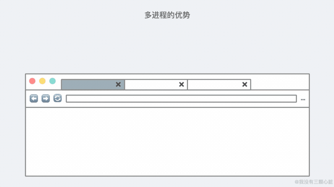 多进程的好处显而易见。比如当你打开了三个标签页,其中一个崩溃了,你可以关掉它而不会影响其他两个标签页: