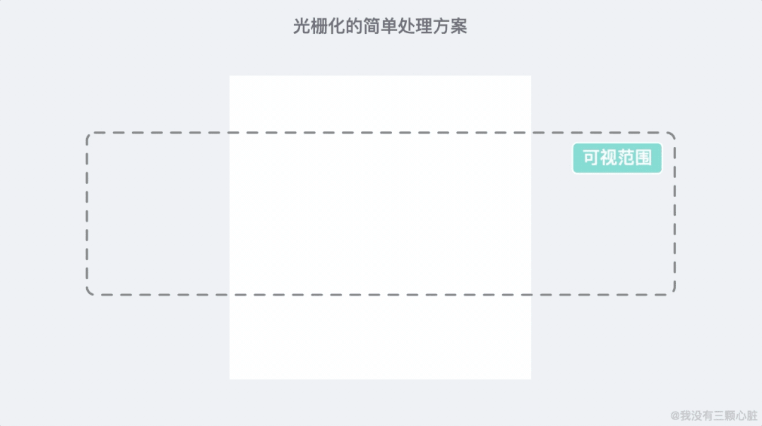 处理这种情况的一种简单的方法是,先在光栅化视窗内的画面,如果用户滚动页面,则移动光栅框,并光栅化填充缺少的部分。这就是 Chrome 首次发布时处理光栅化的方式。