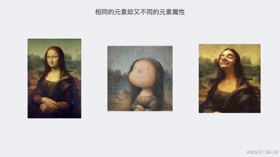 首先,图中的元素以及具体元素的属性分开描述(如:图里有一个圆是元素,圆有多大具体在什么位置等是属性):