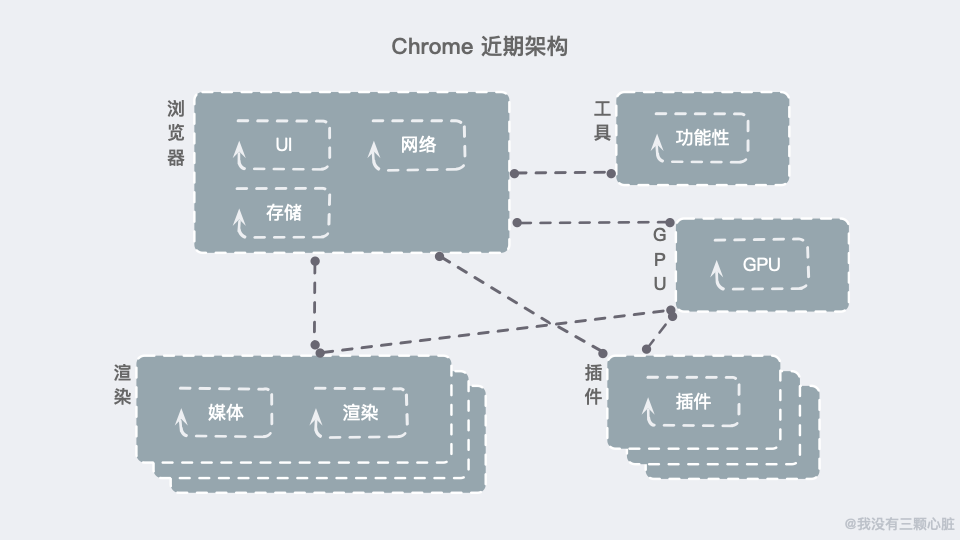 就拿 Chrome 举例来说,就采取了下方的架构方式: