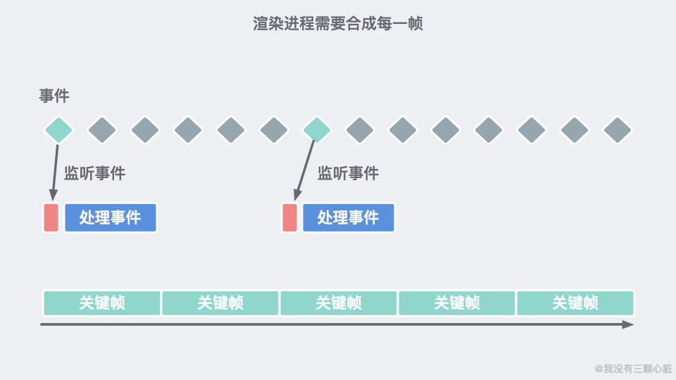 我们也可以编写自己的逻辑文件(js 文件)来监听某一事件进行对应的处理。然后再统一由渲染进程进行合成。为了浏览流畅,浏览器需要保证渲染进程的渲染速度与屏幕刷新率一致(大概每秒 60 帧)。