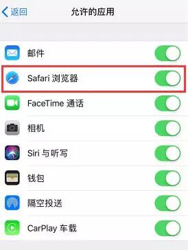 打开 iPhone 【设置】-【屏幕使用时间】(或访问限制),点击【内容和隐私访问限制】,根据提示输入密码,找到【允许的应用】,打开【Safari 浏览器】后面的开关即可。