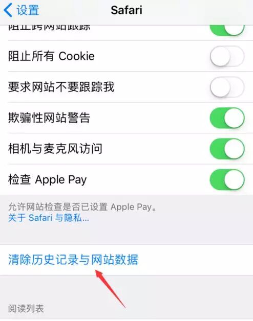 若想要清除您的 Cookie 并保留历史记录,请前往【设置】-【Safari 浏览器】-【高级】-【网站数据】,然后轻点移除所有网站数据。