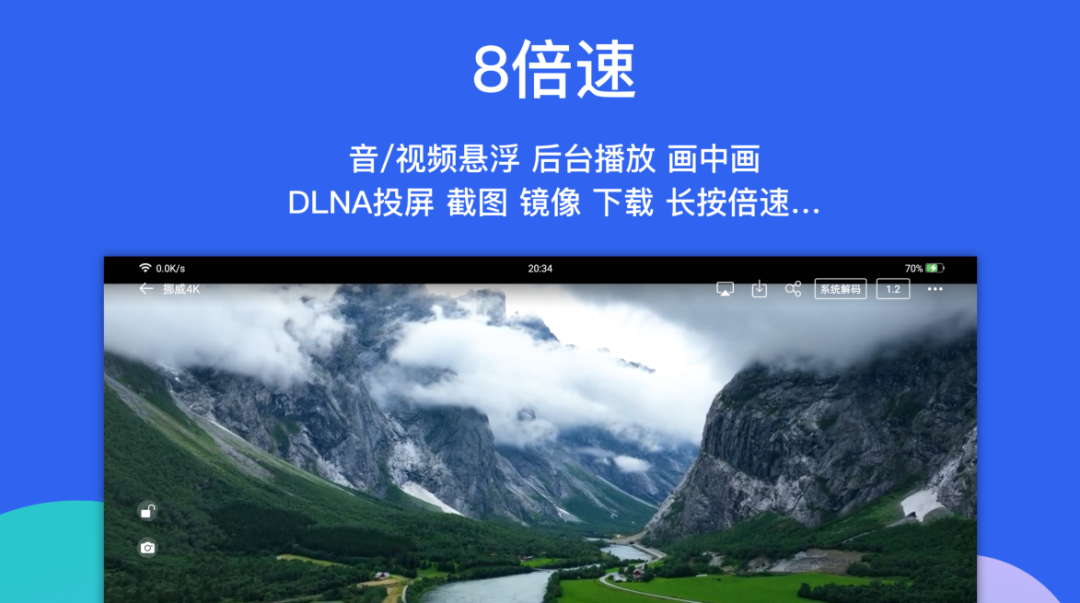 -三无产品:无推送,无新闻,无广告,毫秒级启动-音/视频悬浮,8倍速(支持0.5-16.0),分享链接,后台播放,小窗播放,单曲循环,DLNA投屏,视频下载(支持YouTube和M3U8)