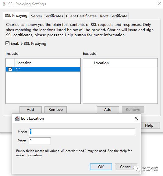 ssl proxying setting。host和port为*就可以。