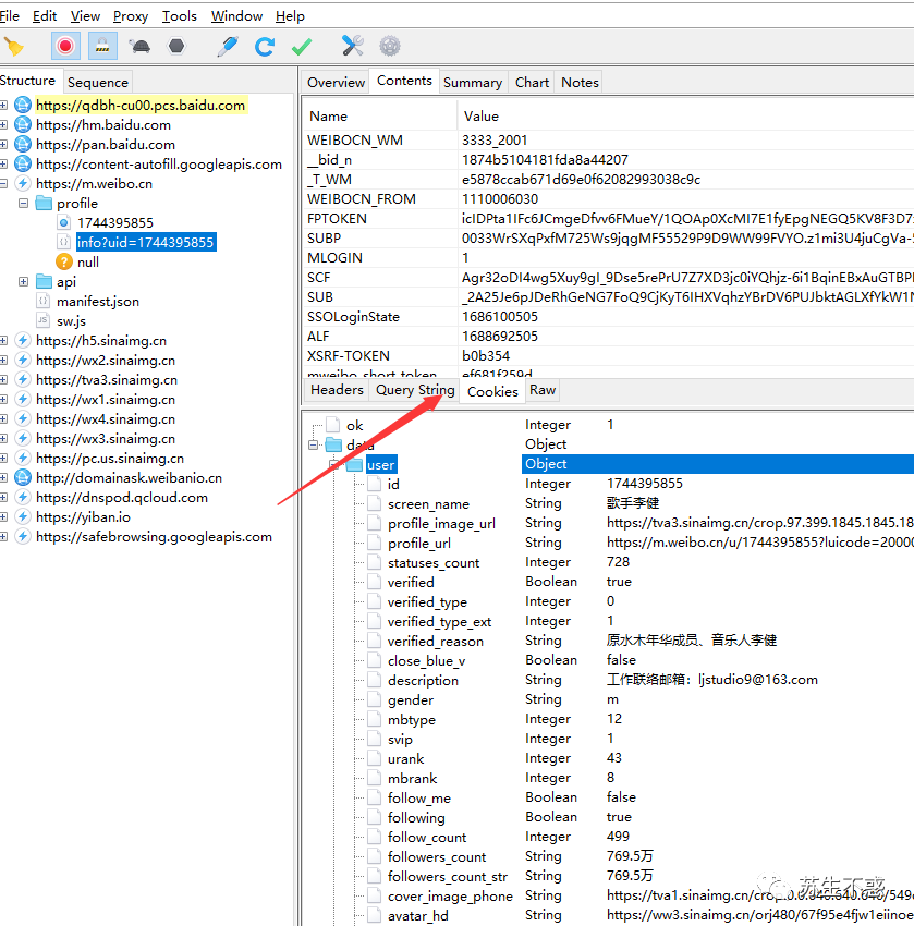抓取网络请求效果如图,可以很清晰的看到微博的各种https请求。