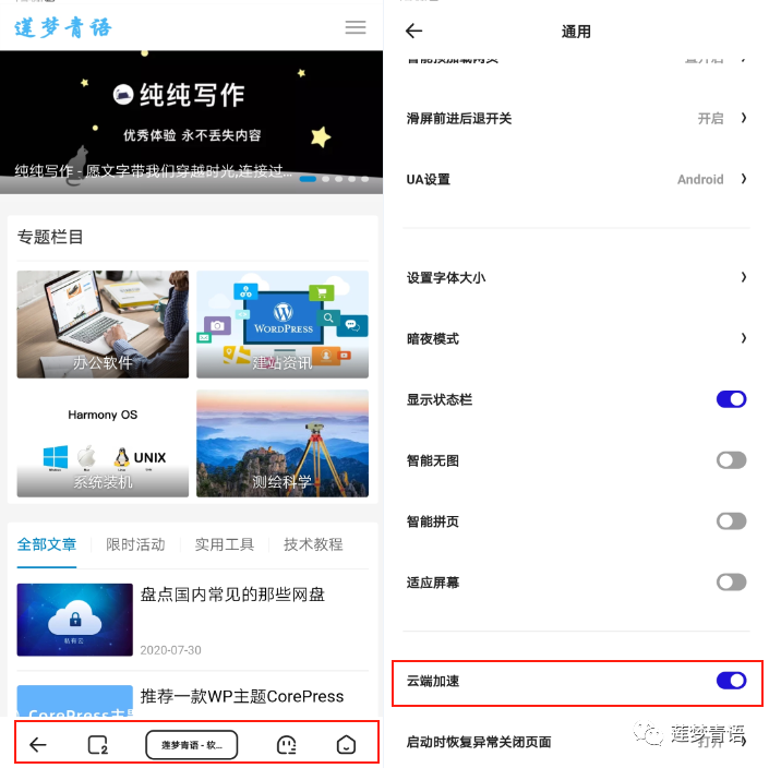 另外,不得不提的是夸克浏览器的设置当中还有一个十分强大的 「云端加速」功能。