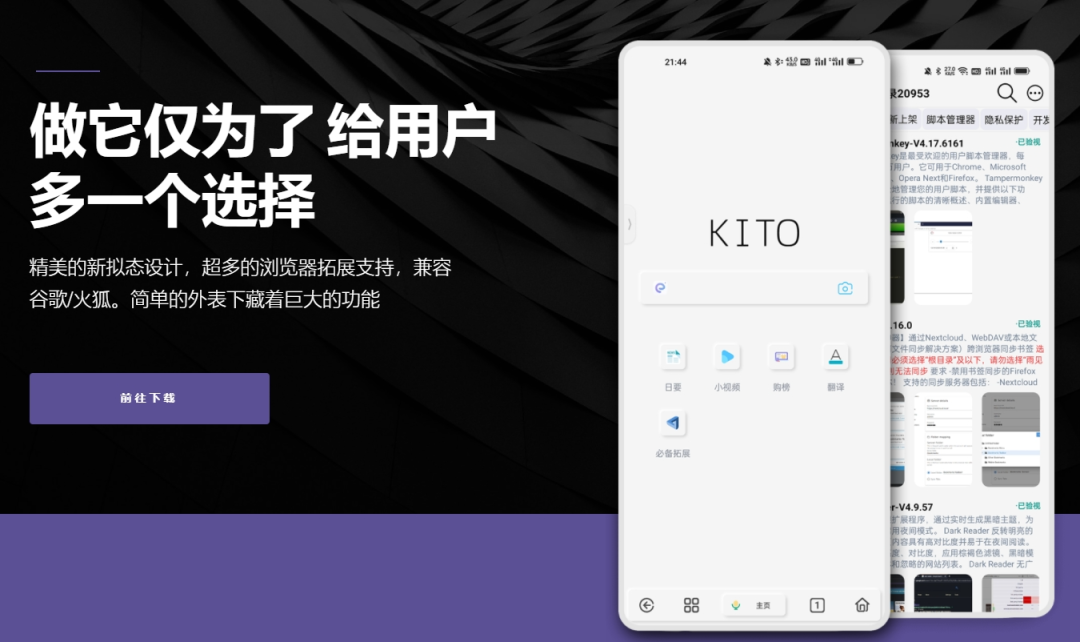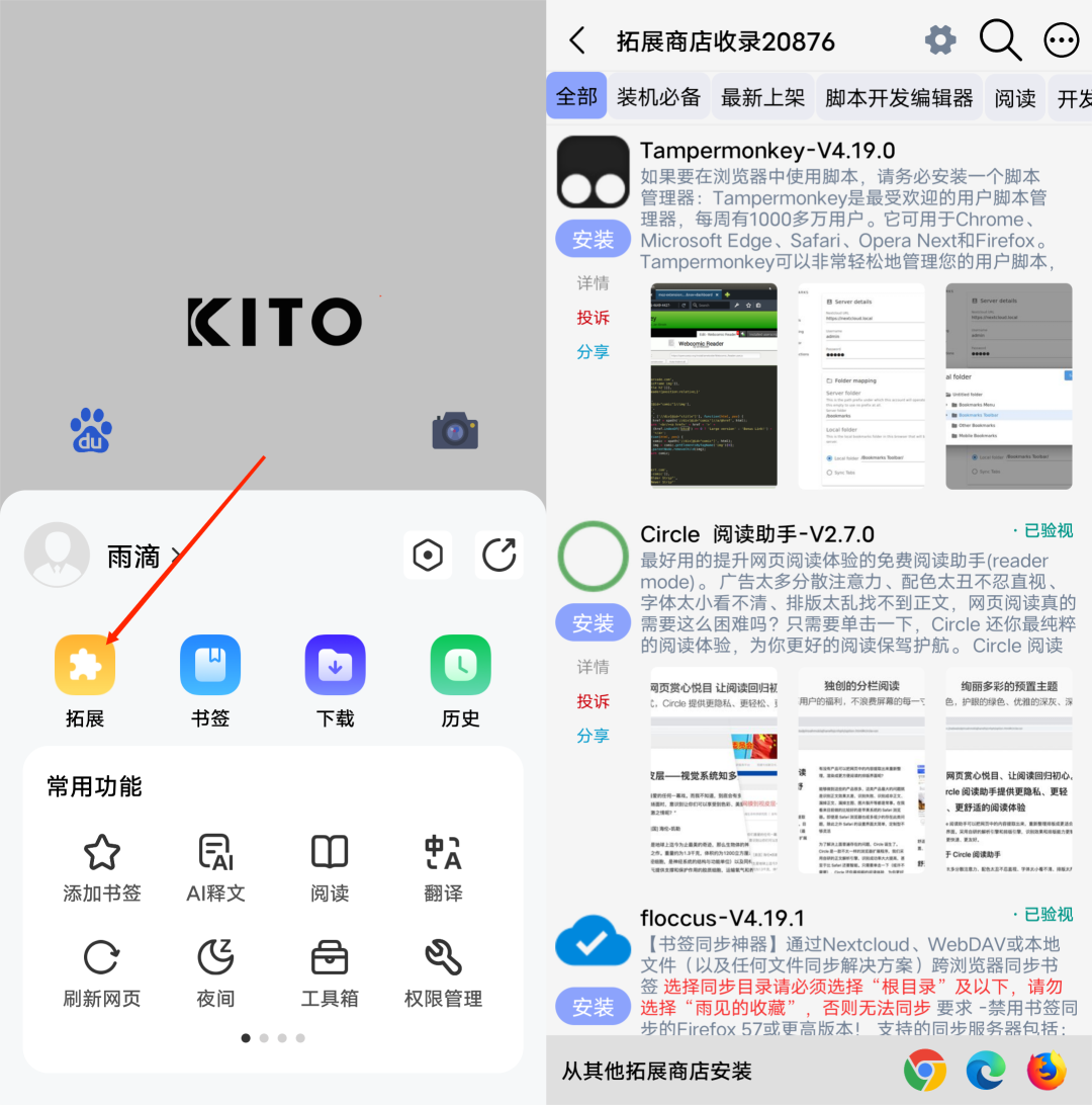 电脑端的浏览器插件脚本啥的大家可能已经轻车熟路了,所以今天给大家分享一款新发现的安卓宝藏浏览器,我装上以后反手卸载了夸克