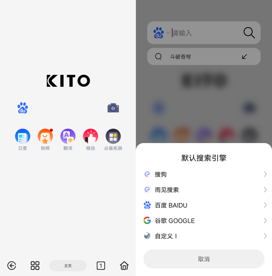 搜索引擎方面支持搜狗、百度、谷歌等常用的,并且还可以自定义,非常的方便。