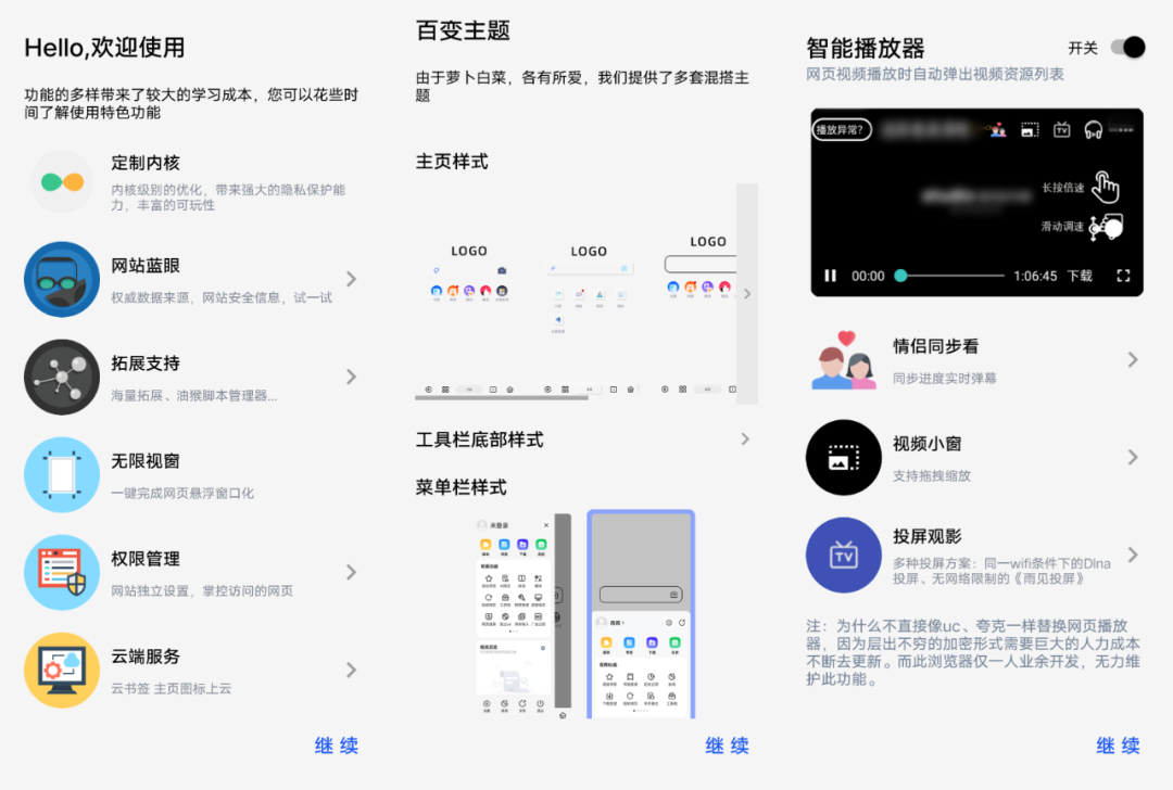 禁止了软件的自动更新,除广告,除无用内容,没有推送和信息流,让浏览器变得简单!