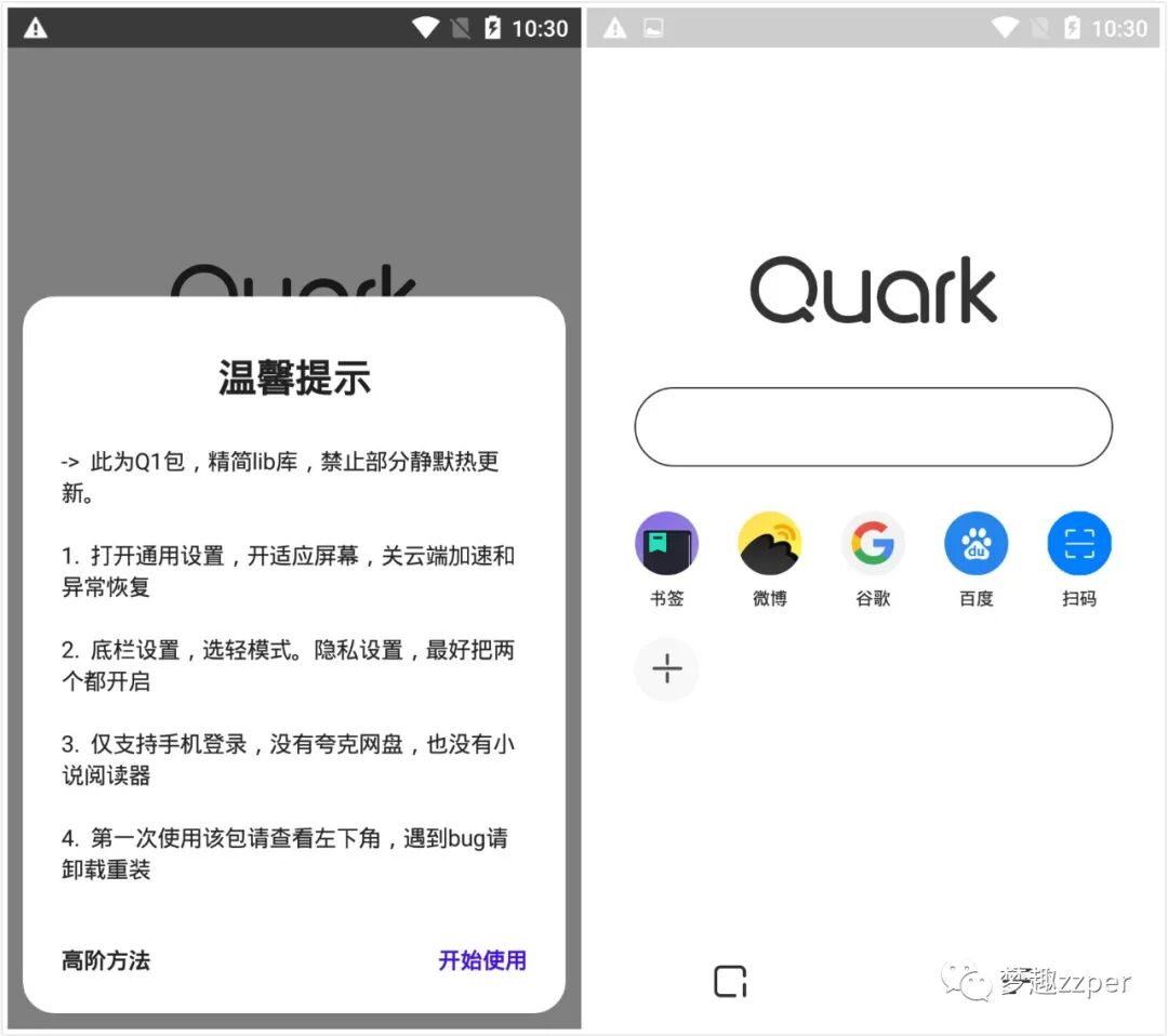 软件介绍:夸克浏览器在设计风格上比较偏向于轻快简便,整体颜值很高,也很简洁。但随着版本的更新,增加了精选,夸克宝宝让大家越用越不习惯,官方还不提供关闭功能。今天分享的是去掉精选和夸克宝宝按钮,这感觉才是最初的夸克该有的UI界面。