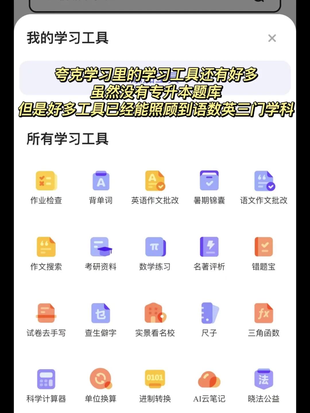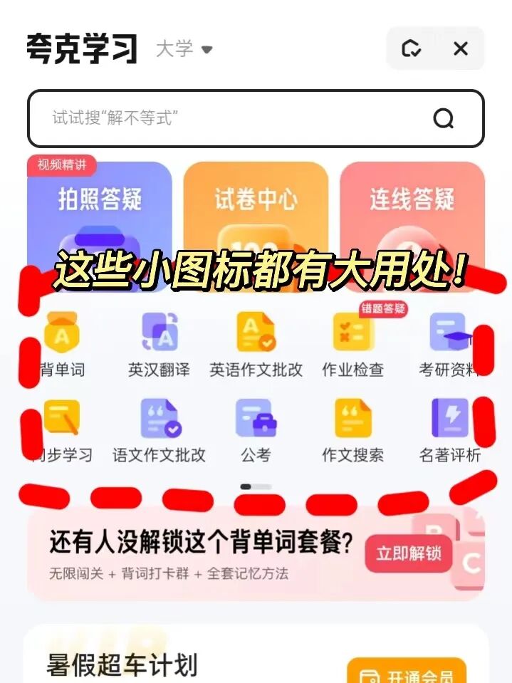今天只夸夸克的夸克学习(别的功能都很牛,大学通也适合在座的各位)