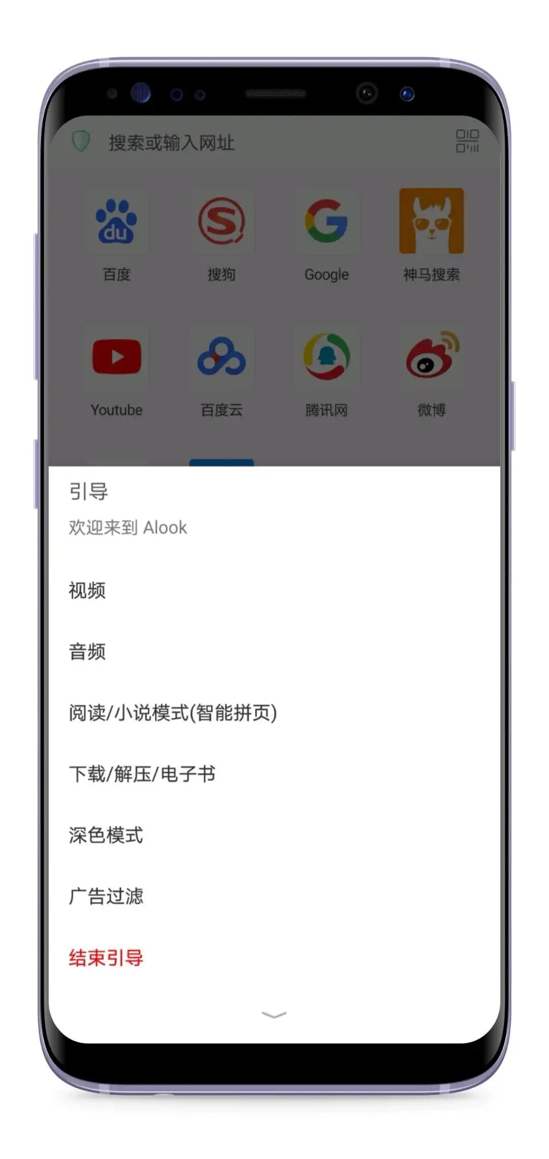 浏览器的界面还是很简洁的,打开能看见各种引导,支持自定义主页样式和导航网站。并且还附带了很多实用功能,如自带去广告、视频倍速播放、阅读模式、视频悬浮窗/后台播放、下载管理器等。