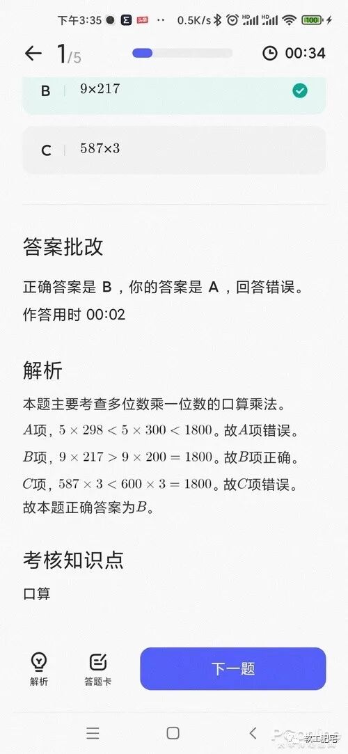 图4 口算批改 图5 给出错题正确答案