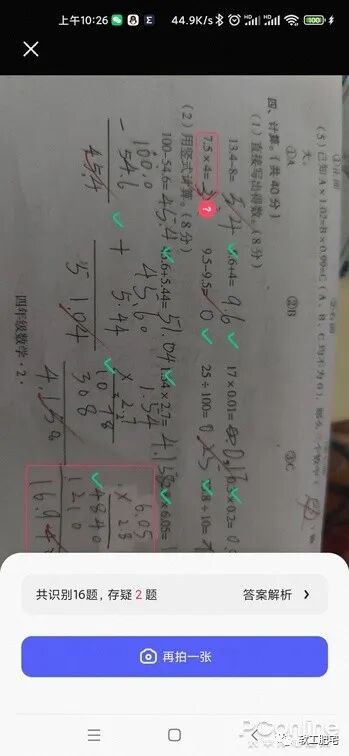 二是口段批改工具,这个可是帮了小编大忙,小编最头疼的就是娃的口算能力,所以每天得出口算给娃练习,然后批改就是个麻烦事儿,有了这个工具,马上就能帮你智能批改,勾选出错题,甚至还给出了错题的答案。