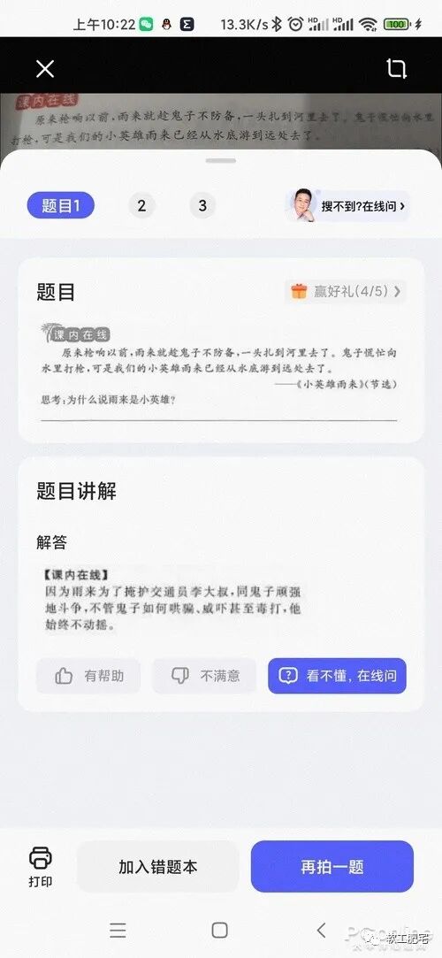 接下来还有几个好用的工具,一是拍照答疑工具,遇到不会的题目,拍照查询一下,你就知道答案了。