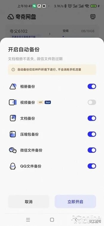 第一个要说的就是夸克浏览器附带的夸克网盘,免费用户拥有10G云存储空间,它带有自动备份功能,可在线查看云盘中的视频、音频、图片、文档等文件,并且夸克网盘的上传下载速度还不赖。