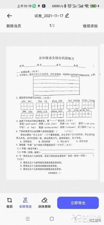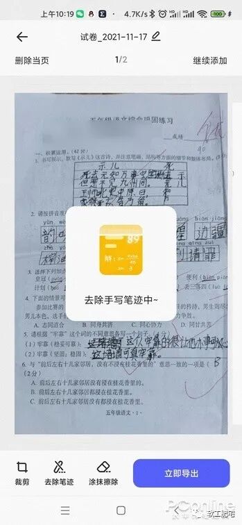 图1 导入试卷 图2 自动去除效果