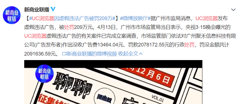 前几天,相关部门已完成立案调查,对UC浏览器的最终处罚也下来了。