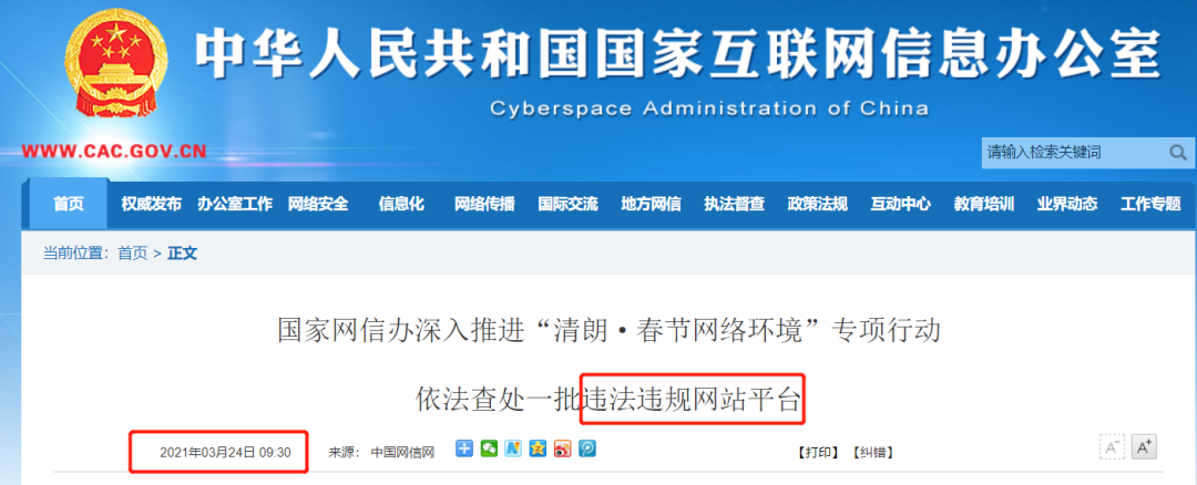 前些天(3月24号),网信办发布消息: