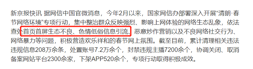 重点整治的就是那种在首页首屏就生态不良、为色情低俗信息引流的APP。