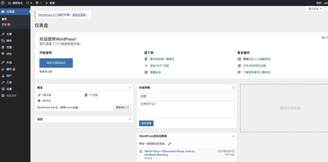 大家可以访问http://{你的公网IP}/wp-admin来进入博客的后台管理界面,这里可以设置博客的主题、发布文章、管理评论等等