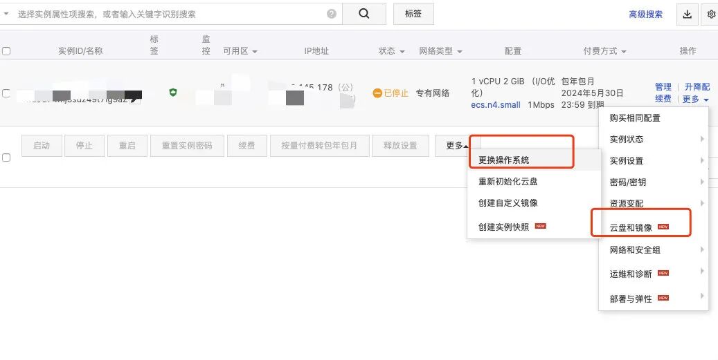 我直接买了三年了,点击更多这里可以进行关机、重装、制作镜像等等。